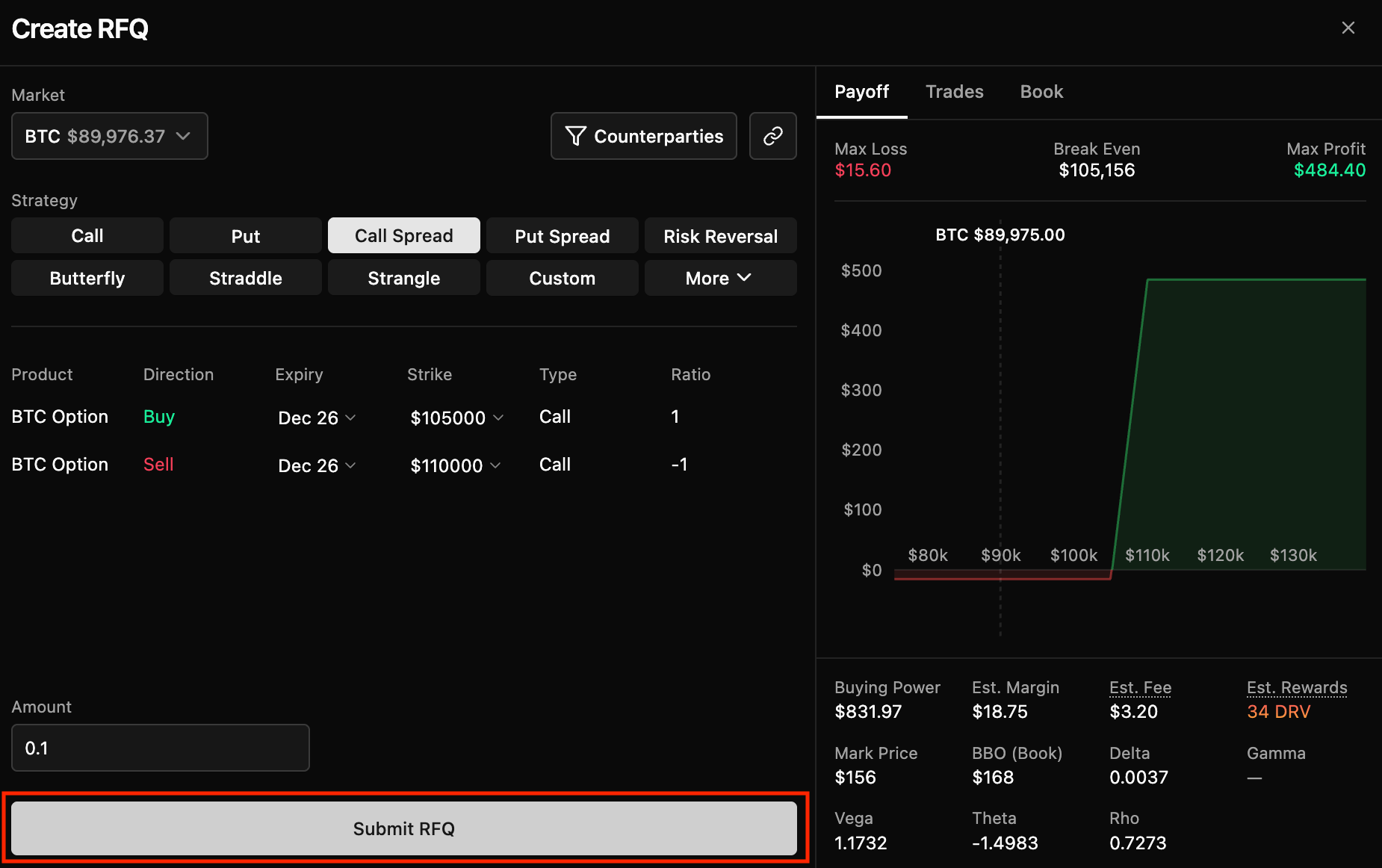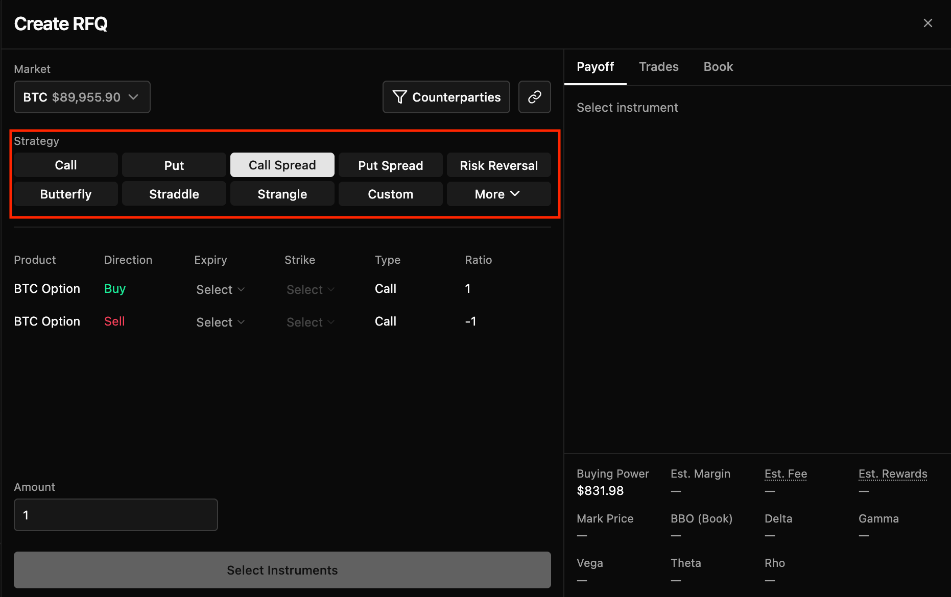 So we rebuilt the RFQ interface to do exactly that. The new design puts structure selection, visual payoffs, greeks, and pricing streams in one place.