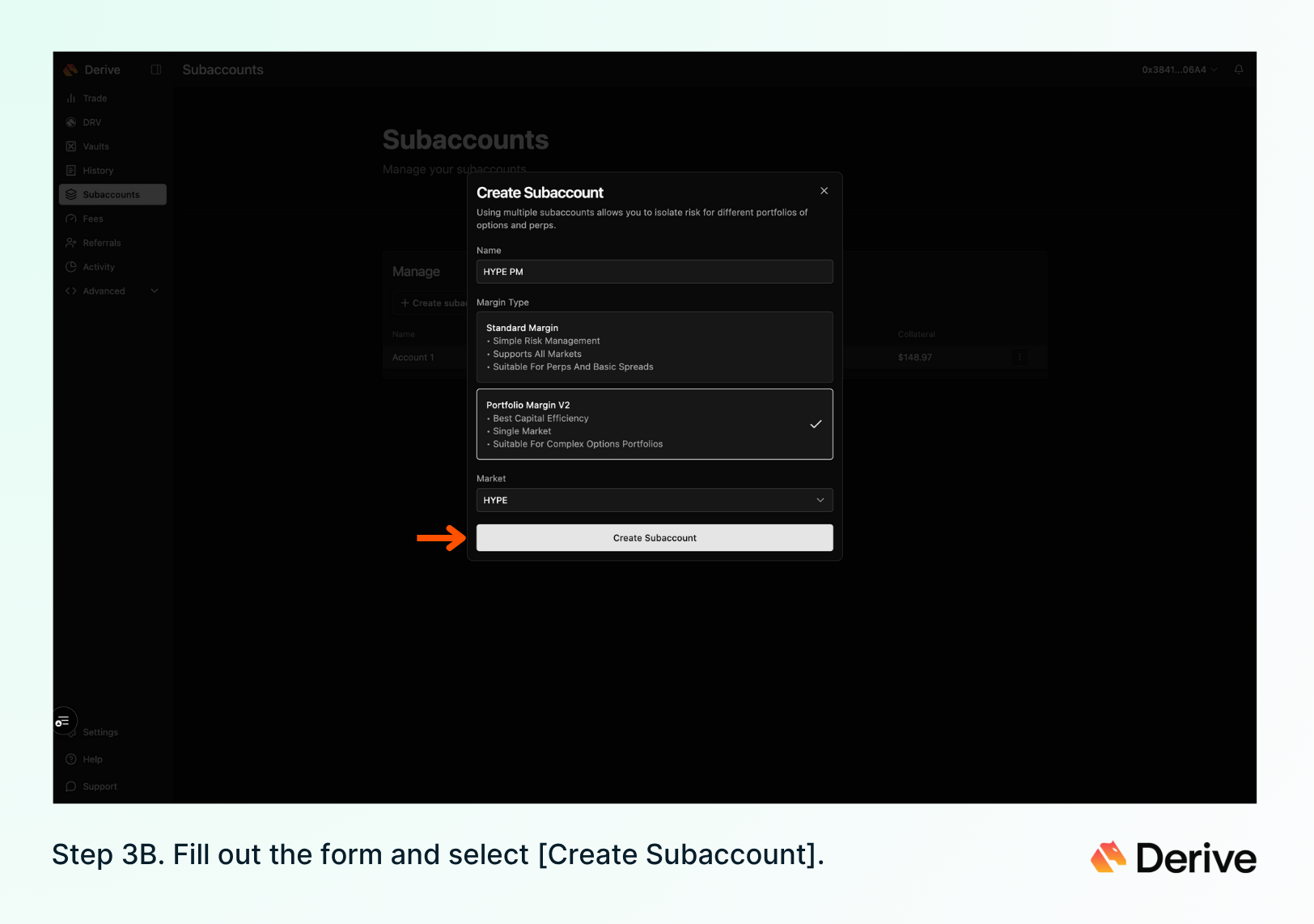3) Create a HYPE Portfolio Margin subaccount for more efficient margining. (Optional)