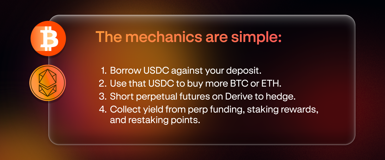 - The vault automates a classic basis trade, collateralizing LBTC and weETH to capture perp funding yield, staking rewards, and restaking points; without selling the base asset.