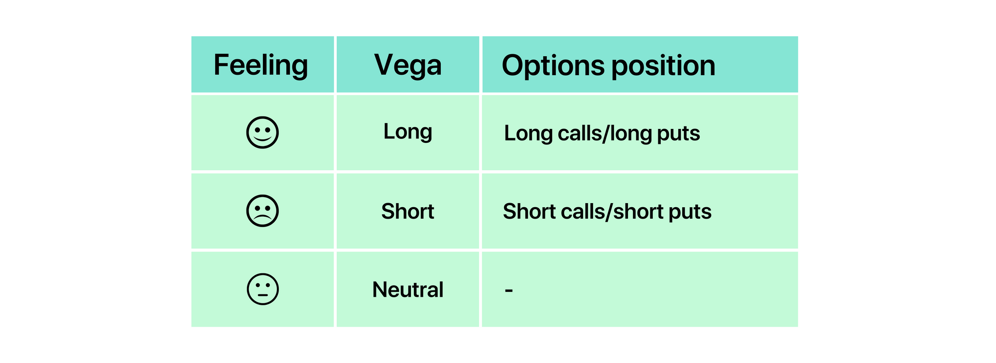 Vega risk describes the risk associated with changes in the implied volatility (IV) of the underlying asset. We can get a sense for the vega risk of an options position by examining whether we are happy or sad if IV increases.